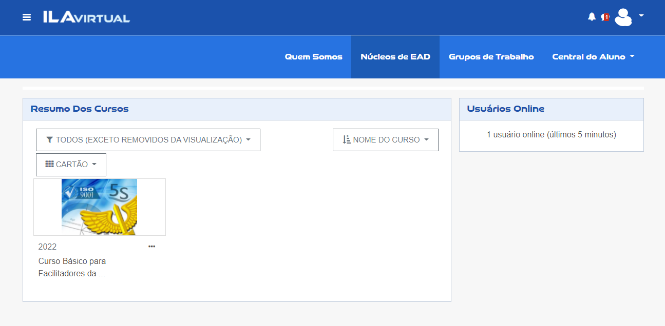 Localize o curso para o qual foi matriculado, e clique no respectivo botão "ACESSO" (localizado abaixo do card do seu curso).