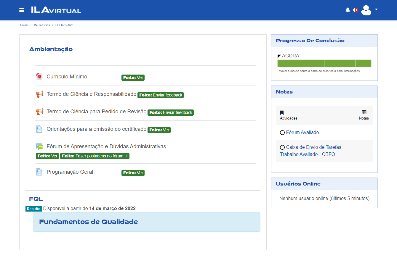 A "Página inicial" é personalizada em função dos cursos que o aluno está matriculado. Esta página será sua referência inicial para navegar no site, ela será constantemente atualizada de acordo com as atividades contidas em seus cursos.